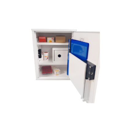 De Medicijnkast MB 50 is een compacte kast die binnen de Medicijnkast MB 200 geplaatst kan worden. Deze kast is speciaal ontworpen om de toegang van gebruikers te beperken en het risico op onbevoegde toegang tot hoog-risico medicatie te verkleinen.